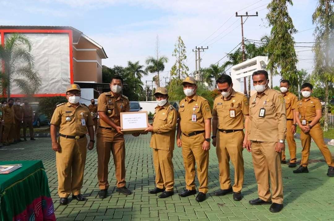Pelaksanaan apel pagi BPKPAD sekaligus penyerahan Daftar Himpunan Ketetapan Pajak (DHKP) Tahun 2022 dan Surat pemberitahuan Pajak Terutang Bumi dan Bangunan Pedesaan dan Perkotaan (SPPT PBB-P2) Tahun 2022.
