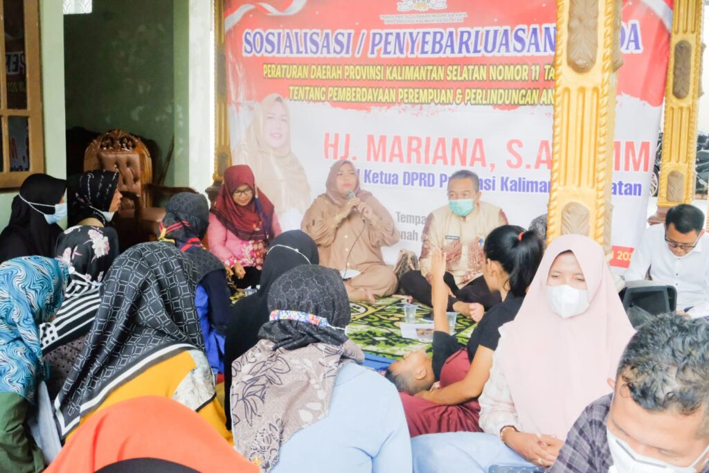 lenterakalimantan.com, BANJARMASIN – Wakil Ketua Dewan Perwakilan Rakyat Daerah (DPRD) Provinsi Kalimantan Selatan (Kalsel) Hj. Mariana, S. AB, MM, gelar Sosialisasi atau Penyebarluasan Perda Nomor 11 tahun 2018 tentang Pemberdayaan Perempuan dan Perlindungan Anak.