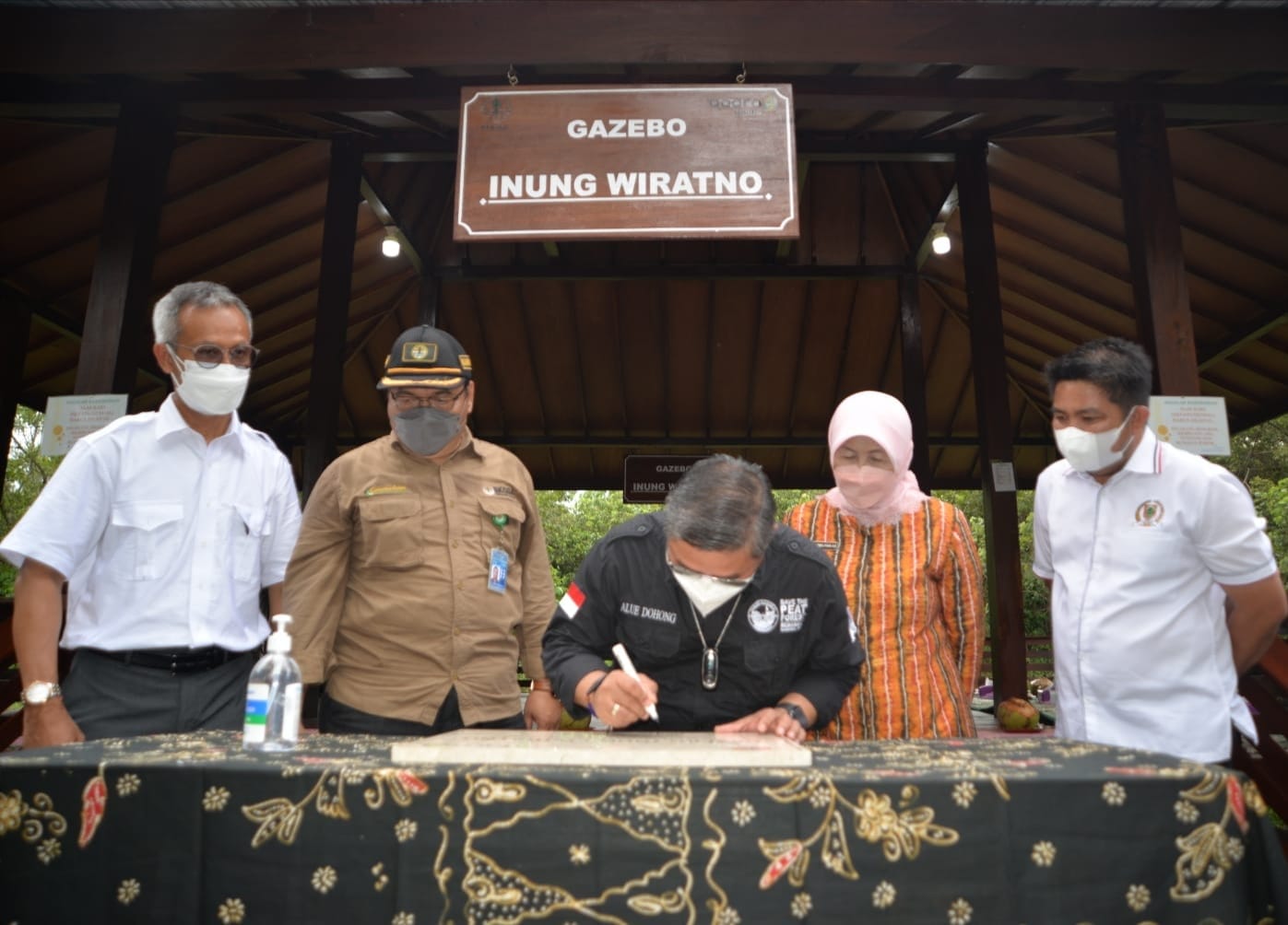 lenterakalimantan.com, BARITO KUALA – Bupati Barito Kuala (Batola) Hj Noormiliyani AS mendampingi Wakil Menteri Lingkungan Hidup dan Kehutanan (Wamen LHK) Alue Dohong meresmikan Taman Wisata Alam (TWA) Pulau Bakut dan Gazebo Inong Wiratno, Jum’at (11/02/2022).