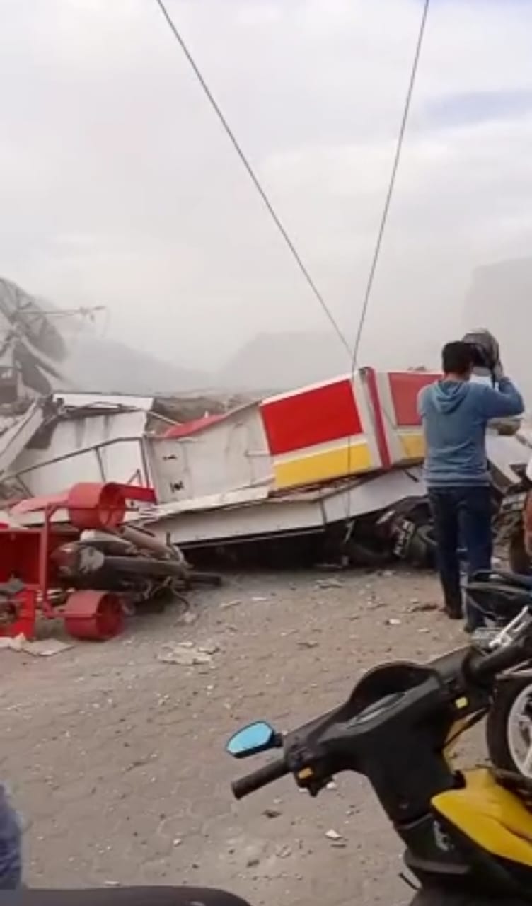 “Korban ada, terkurung di dalam bangunan yang ambruk,” Ujar pemilik warung Tenda Biru, H Salapudin.