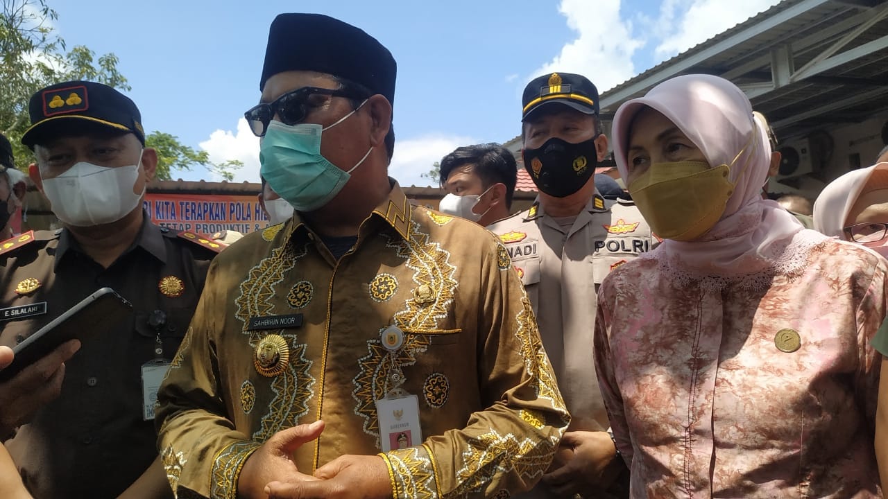 Gubernur Kalimantan Selatan H Sahbirin Noor didampingi Bupati Barito Kuala Hj Normiliyani AS saat diwawancarai pihak media.