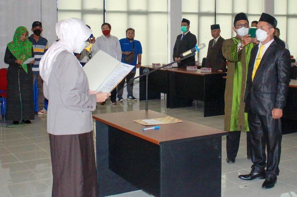 Prosesi pelantikan dan pengambilan sumpah sendiri disaksikan Wakil Bupati H Rahmadian Noor beserta Ketua TP-PKK Hj Saraswati Dwiputranti, Sekda H Zulkipli Yadi Noor dan Ketua DWP Hj Herwina Rezeki, para Staf Ahli Bupati, para Asisten Sekretaris Daerah, Inspektur Kabupaten Batola, para Kepala Dinas/Badan, Kasatpol-PP, Direktur RSUD H Abdul Azis Marabahan dan Kalak BPBD.