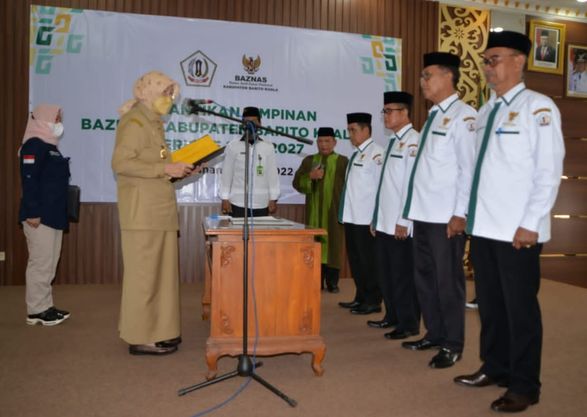 lenterakalimantan.com, BARITO KUALA – Bupati Hj Noormiliyani AS melantik Pimpinan Badan Amil Zakat Nasional (Baznas) Kabupaten Barito Kuala periode 2022-2027, di Aula Selidah Marabahan, Selasa (12/07/2022).