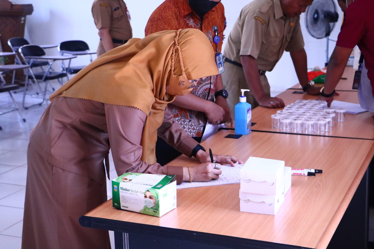 lenterakalimantan.com, PELAIHARI- Badan Kesatuan Bangsa dan Politik (Bakesbangpol) Tanah Laut melakukan deteksi dini narkoba melalui tes urine pejabat lingkup Pemerintah yakni Pejabat Tinggi Pratama (Eselon II), Pejabat Administrator (Eselon III), dan Pejabat Pengawas (Eselon IV), Selasa (23/8).