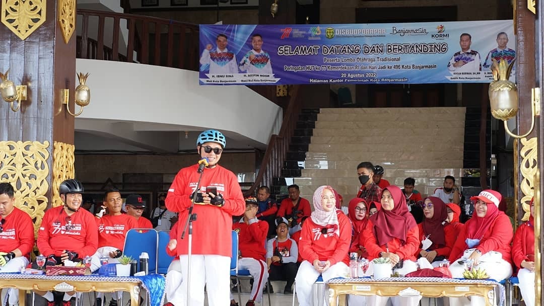lenterakalimantan.com, BANJARMASIN – Pemerintah Kota Banjarmasin melalui Dinas Kebudayaan, Kepemudaan, Olahraga dan Pariwisata (Disbudporapar) Kota Banjarmasin menggelar kegiatan lomba Olahraga Tradisional dalam rangkaian peringatan HUT Republik Indonesia (RI) Ke-77 dan Hari Jadi Kota Banjarmasin Ke-496, bertempat di Halaman Balai Kota Banjarmasin, Sabtu (20/08/2022).