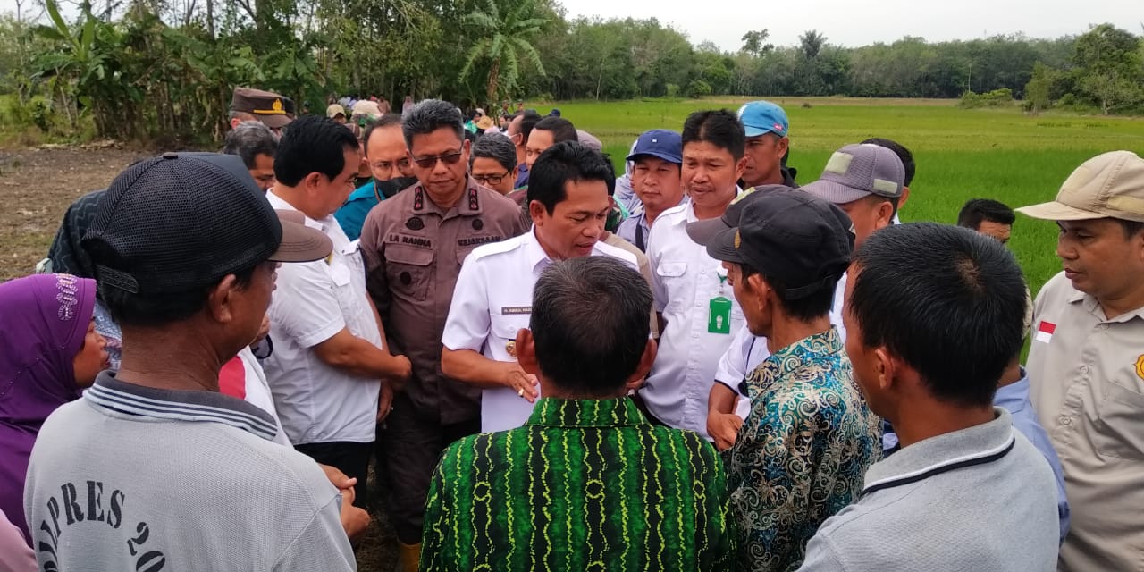 Bupati Balangan H Abdul Hadi secara langsung berdialog dengan para petani yang tengah berhadir dalam acara Penanaman Padi Serentak di Desa Muara Jaya Kecamatan Awayan Kabupaten Balangan, Rabu (14/12).