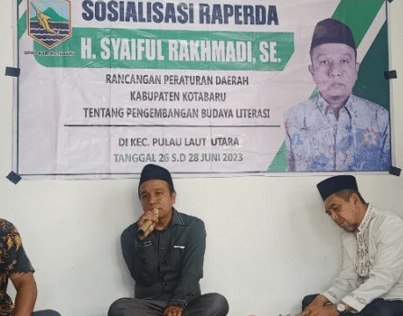 lenterakalimantan.com, KOTABARU – Rancangan Peraturan Daerah Kabupaten Kotabaru tentang pengembangan budaya literasi di sosialisasikan oleh Anggota DPRD Kotabaru, H Syaiful Rahmadi di Desa Rampa Lama Kecamatan Pulau Laut Utara Kabupaten Kotabaru, Rabu (19/7/2023).