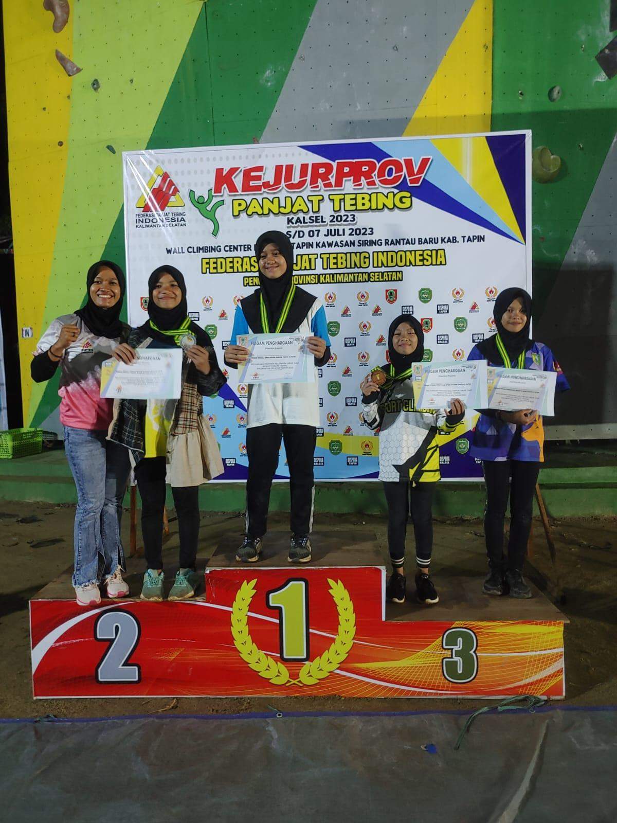 Panjat tebing Kejurprov Sekalsel di Tapin itu diselenggarakan dari 6 – 9 Juli 2023 dan sebagai juara umum dari FPTI Kabupaten Banjar dan FPTI Kabupaten Kotabaru menempati urutan ke-5 dari 13 kabupaten/kota se-Kalsel.