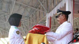 Penyerahan Bendera Merah Putih dari Wakil Bupati Barito Utara kepada petugas pengibaran bendera merah putih