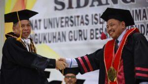 Rektor Uniska MAB Mengukuhkan Guru Besar pada pelaksanaan wisuda ke 45 di Gedung Sultan Suriansyah Banjarmasin. Rabu, (2/8/2023) – Sumber: Humas Uniska Banjarmasin for lenterakalimantan.com