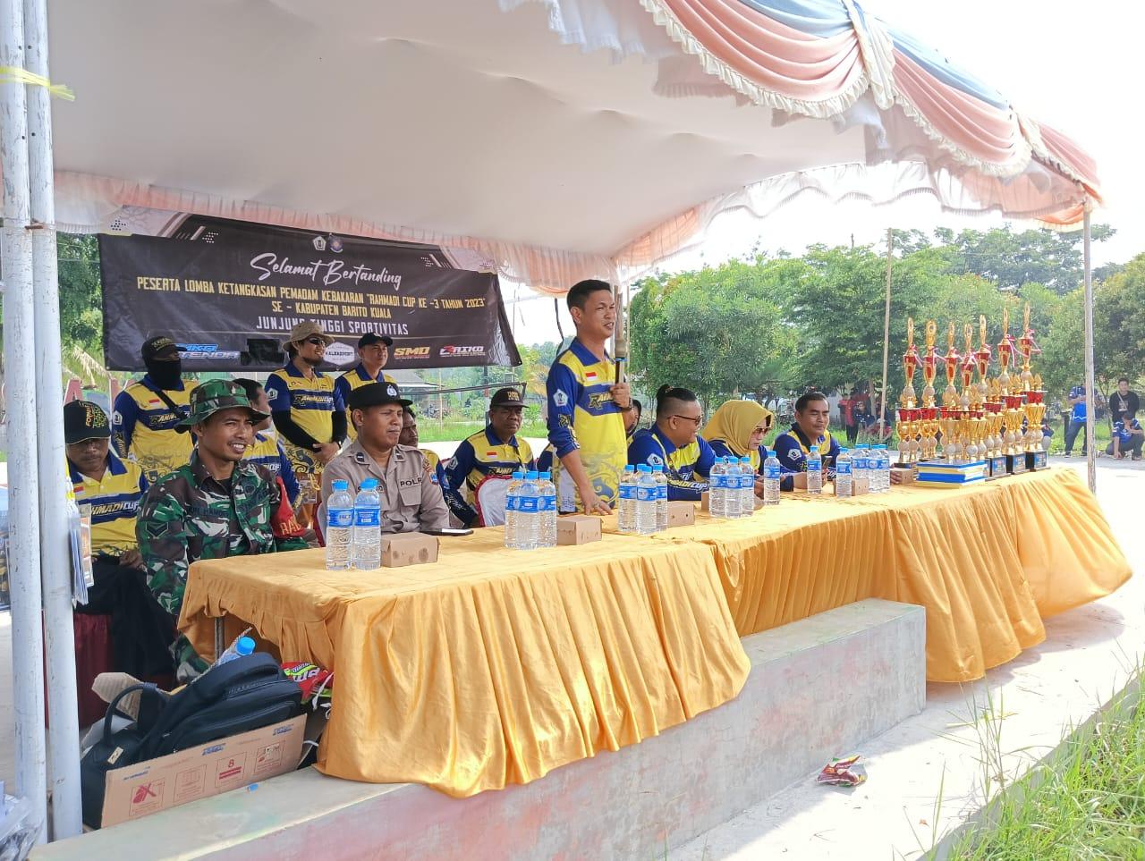 lenterakalimantan.com, MARABAHAN – Sebanyak 35 tim BPK/PMK beradu ketangkasan dalam barisan pemadam di lapangan bola Desa Karang Indah Kecamatan Mandastana, Kabupaten Barito Kuala, Minggu (12/11/2023).
