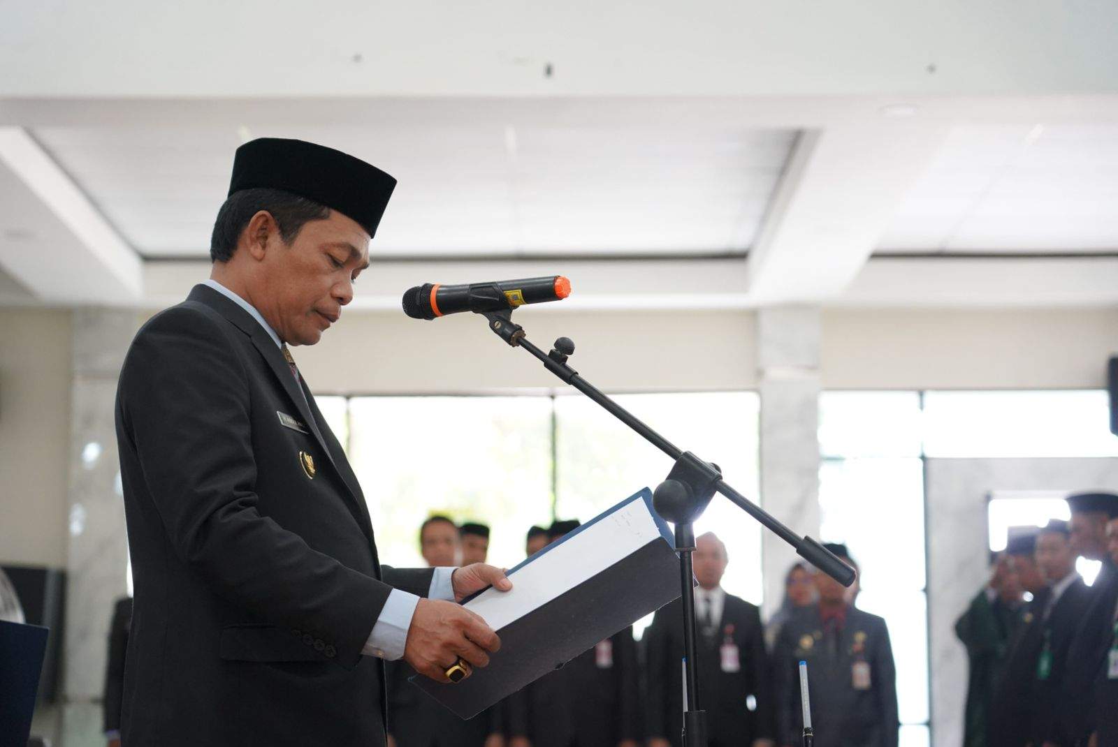 Bupati Balangan saat membacakan sumpah kepada pejabat yang akan dilantik. Foto: Prokopim Balangan