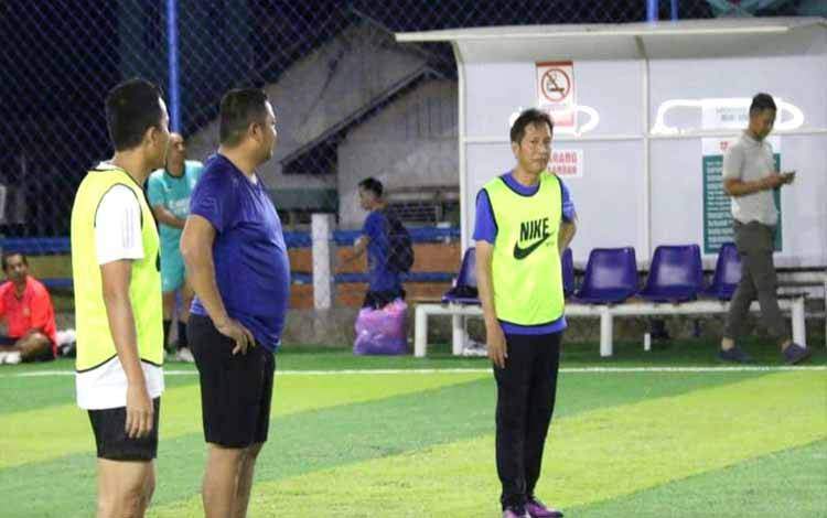 Pj Bupati Barito Utara, Muhlis bersama unsur FKPD dan SOPD saat bermain sepak bola di lapangan Mini Soccer Muara Teweh, Jum'at (23/2/2024) malam