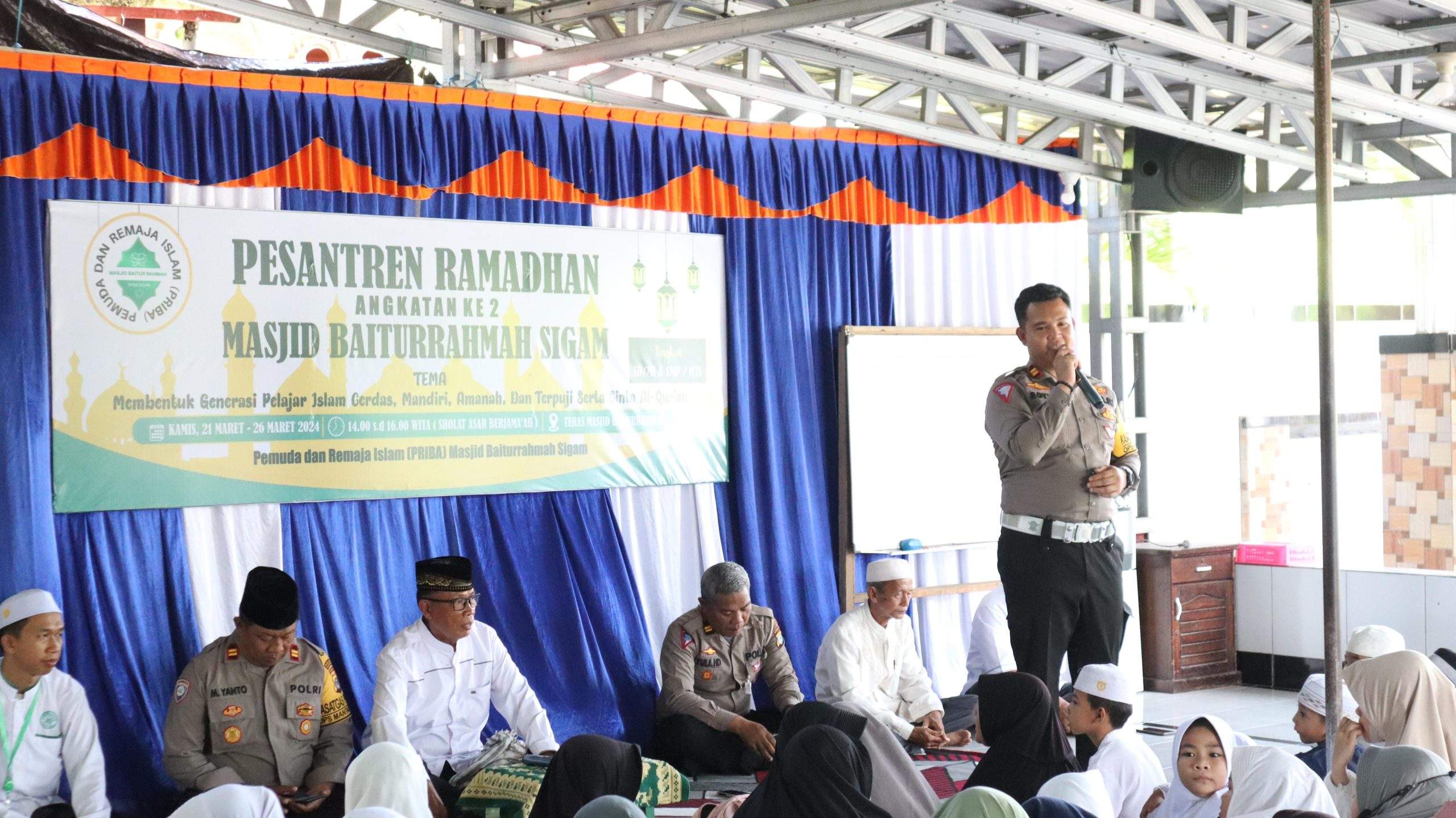 H. Pato S Tompo, tokoh masyarakat Desa Sigam, mengucapkan terima kasih atas kehadiran Kasat Lantas, Kasat Binmas Polres Kotabaru, dan anggota yang memberikan pembinaan kepada para peserta Pesantren Masjid Baiturrahman.