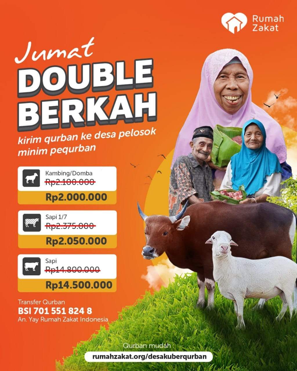 Yuk, jangan lupa pesan qurban sekarang di Rumah Zakat! Klik link : https://linkrz.id/DesakuBerqurban1445H