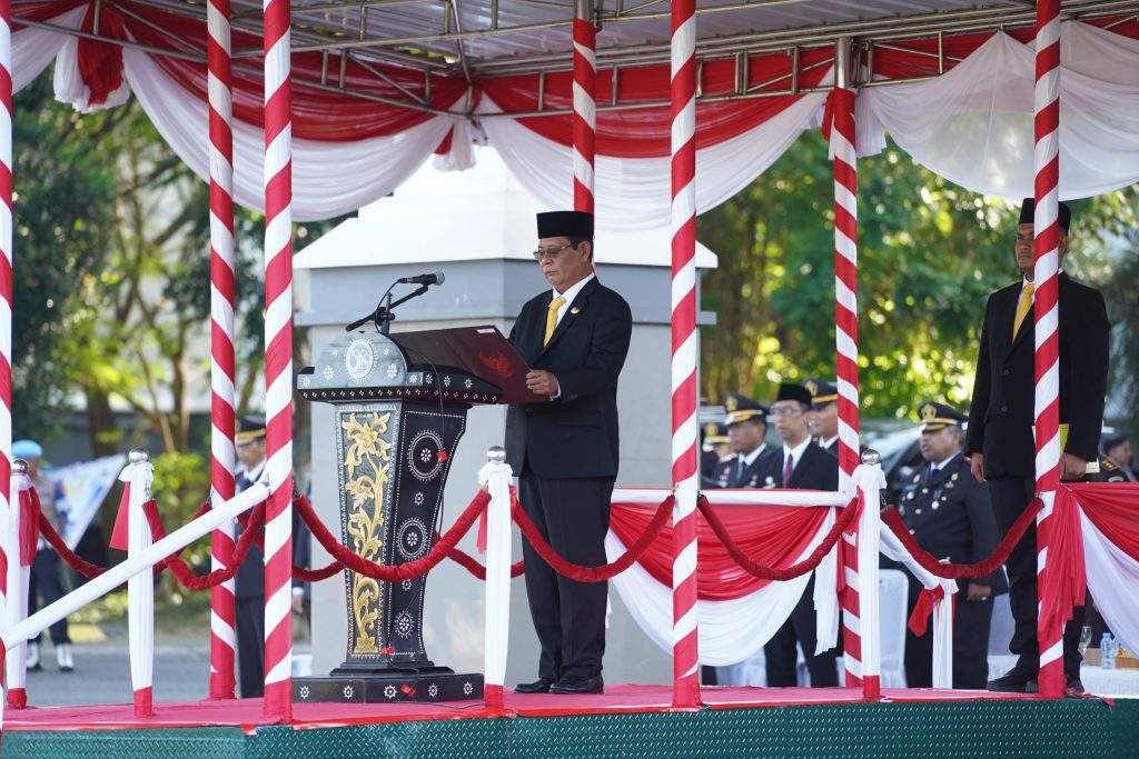 Gubernur Kalsel H. Sahbirin Noor menjadi Inspektur Upacara dalam Peringatan Hari Pengayoman ke-79 Kementerian Hukum dan Hak Asasi Manusia (HAM) di Kantor Gubernur Kalsel di Banjarbaru pada Senin (19/8/24). Foto: Donny
