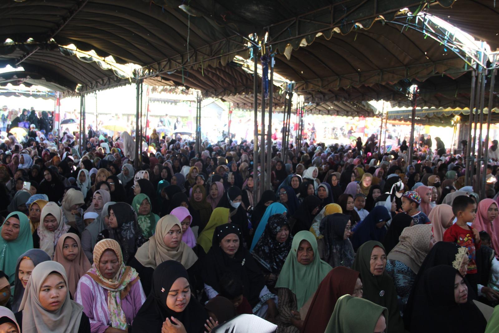 Jemaah perempuan juga terlihat memadati area haul, terpisah dengan jamaah laki-laki.
