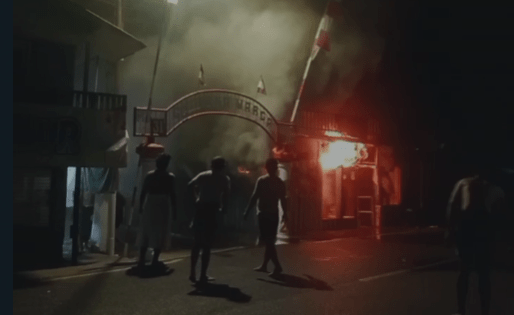 Api berkobar di salah satu rumah yang juga menghanguskan kios, Selasa (24/9/24). Foto: Humas BPBD Banjarmasin