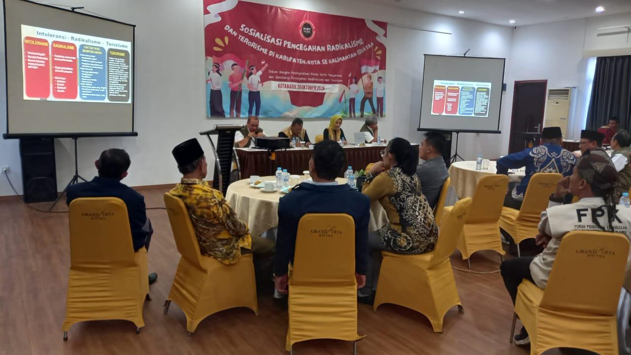 lenterakalimantan.coom, KOTABARU – Forum Koordinasi Pencegahan Terorisme ( FKPT ) bersama Kesbangpol provinsi Kalsel menyelenggarakan sosialisasi pencegahan radikalisme dan terorisme di Kabupaten Kotabaru, Sabtu (26/10/24)