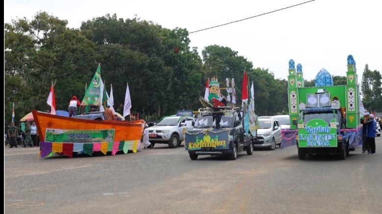 Pawai Ta’aruf Pekan Olahraga dan Seni Antar Diniyah (PORSADIN) diwarnai dengan berbagai mobil hias berupa tempat ibadah masjid maupun lainnya.