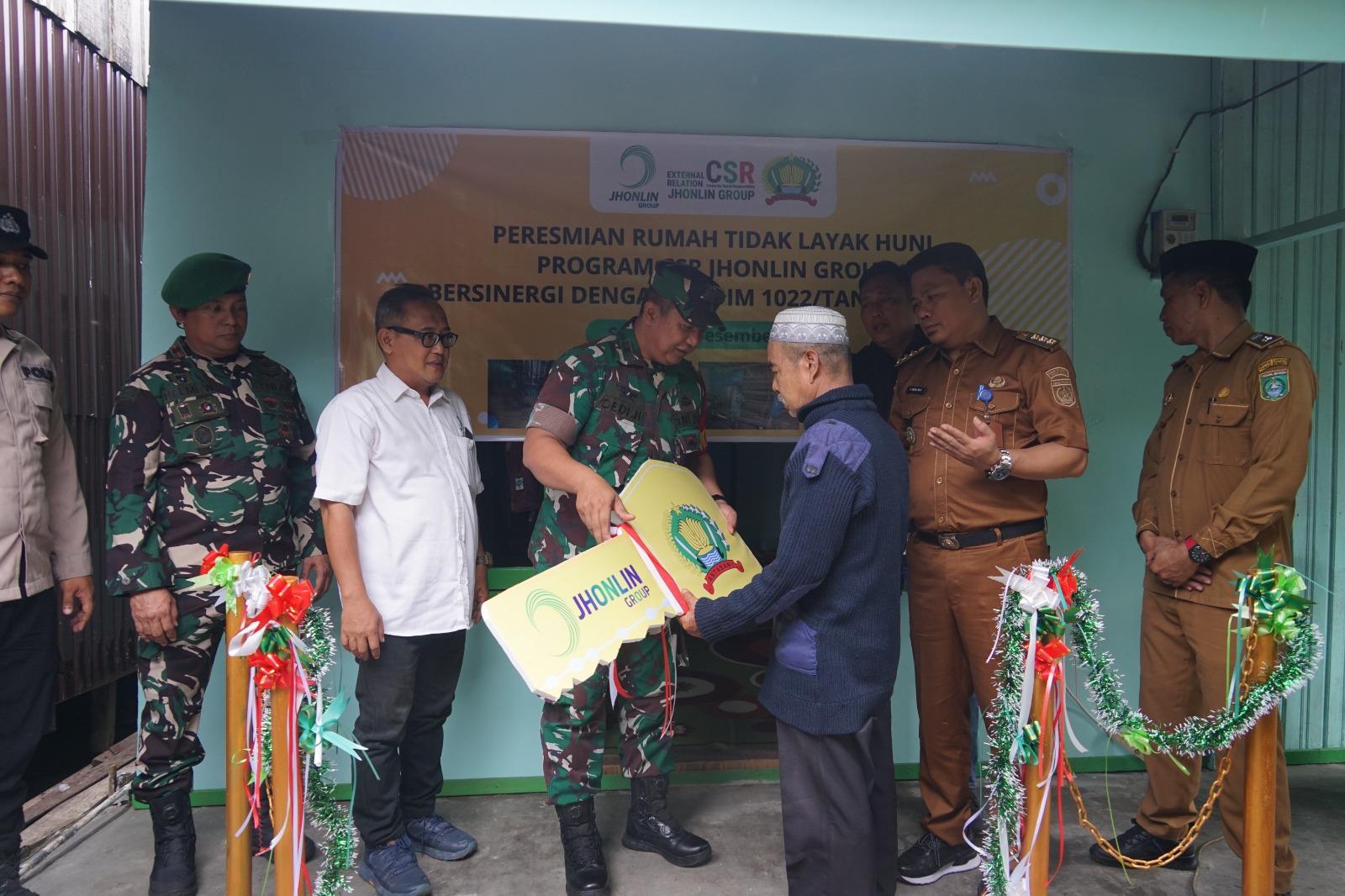 Peresmian rumah ditandai dengan pemotongan pita oleh Kasdim, didampingi Humas CSR PT Jhonlin Group, Rudi Tri Harianto. Acara ini disaksikan oleh Camat Simpang Empat, Danramil 1022-01/Simpang Empat, Kepala Desa Sejahtera, dan tokoh masyarakat setempat.