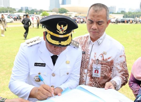 lenterakalimantan.com, MARABAHAN – Setelah dilantik menjadi Bupati Barito Kuala dan Wakil Bupati Barito Kuala oleh Presiden Prabowo Subianto di Istana Negara, Jakarta pada Kamis (20/2/2025) pagi. DR. H. Bahrul Ilmi dan Herman Susilo mengeluarkan kebijakan terkait dengan Pupuk bersubsidi di Barito Kuala. Penandatanganan Surat Keputusan (SK) ini didampingi langsung oleh Sekretaris Daerah Barito Kuala Zulkipli.