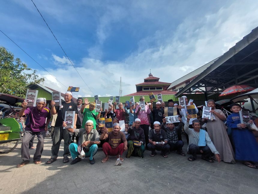Pengurus Langgar Raudatul Hasanah datang membawa bingkisan sederhana—sarung dan sedikit uang. Namun, bukan besarnya pemberian yang membuat para abang becak tersenyum, melainkan kehangatan kepedulian yang jarang mereka rasakan.
