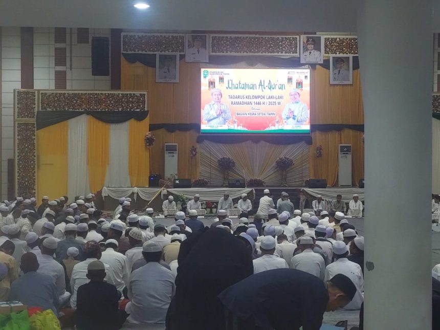 lenterakalimantan.com, RANTAU – Bagian Kesejahteraan Rakyat (Kesra) Setda Kabupaten Tapin sukses menyelenggarakan Khataman Al-Qur’an sebagai penutupan kegiatan Tadarus Al-Qur’an Ramadan 1446 H untuk kelompok laki-laki. Acara ini berlangsung khidmat di Pendopo Galuh Bastari, Kawasan Rantau Baru, Kabupaten Tapin, pada Kamis (27/3/2025).