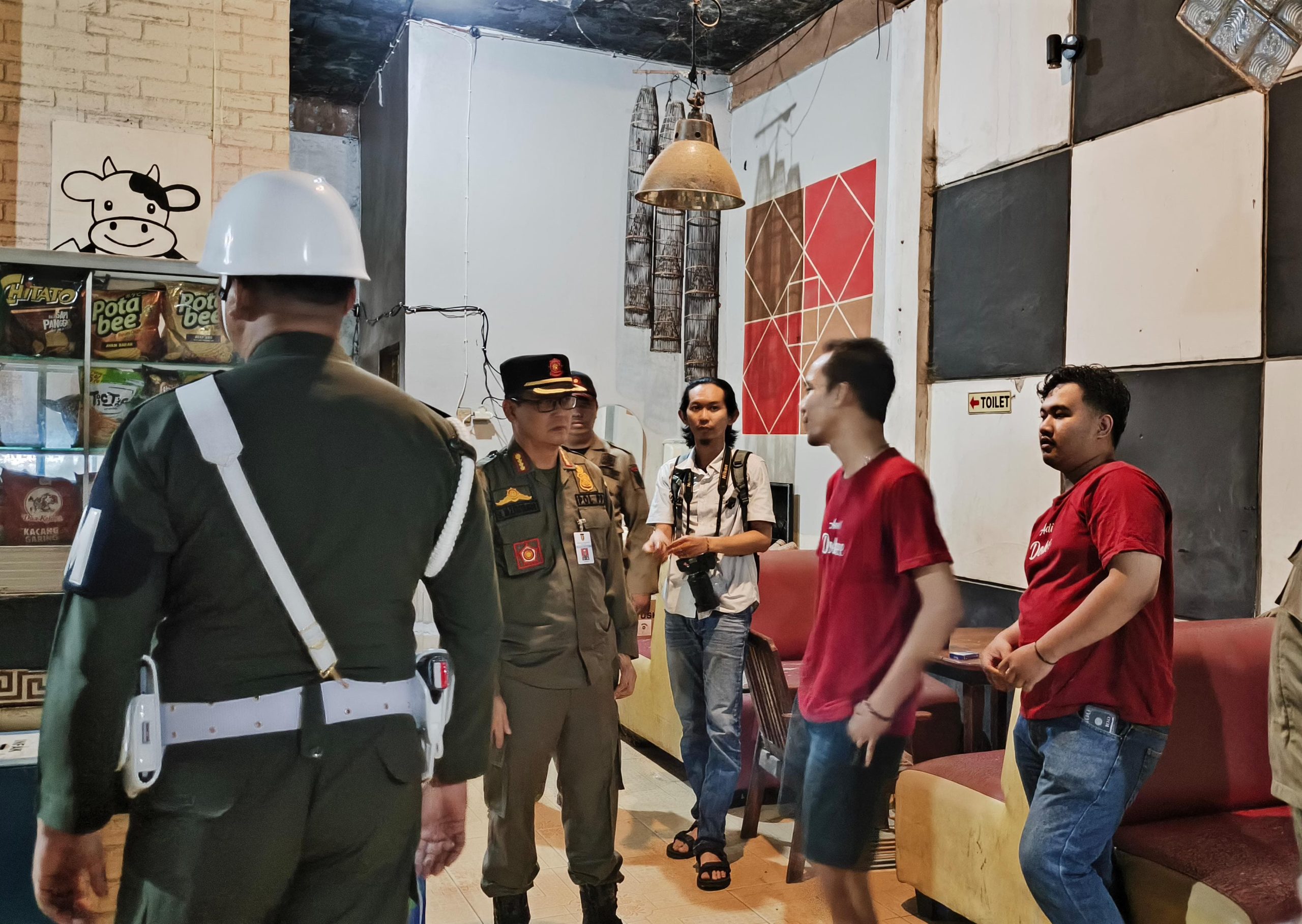 Jajaran Satpol PP Tabalong melakukan sosialisasi di THM yang buka sebelumnya. Foto: JM/lenterakalimantan.com