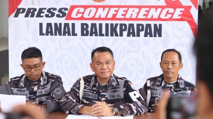 Konferensi pers terkait kasus pembunuhan, oleh seorang anggota TNI Angkatan Laut (TNI AL) yang bertugas di Pangkalan Angkatan Laut (Lanal) Balikpapan, Kalimantan Timur diduga terlibat dalam kasus pembunuhan di Banjarbaru, Kalimantan Selatan, di Mako Lanal Balikpapan. Foto: Dwi Ardianto/Tribunkaltim.co