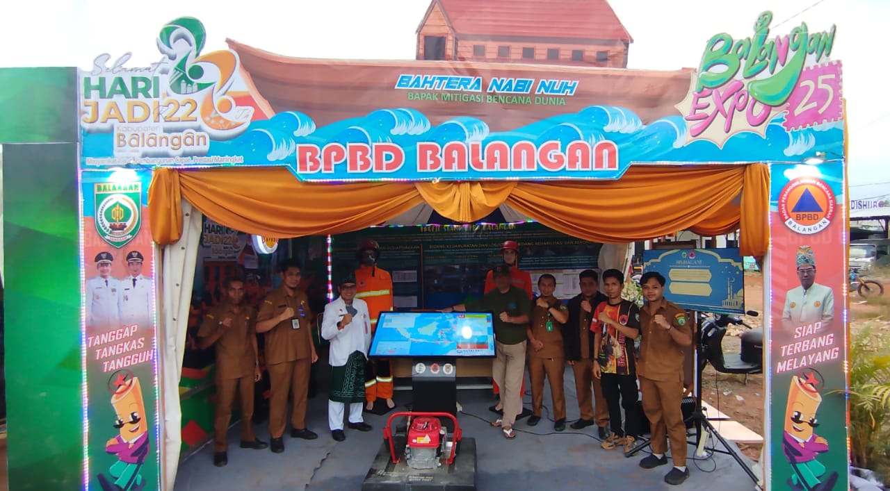 lenterakalimantan.com, PARINGIN – Badan Penanggulangan Bencana Daerah (BPBD) Kabupaten Balangan tampil mencolok dalam Expo Hari Jadi Ke-22 Kabupaten Balangan 2025 dengan mengangkat tema unik dan inspiratif “Bahtera Nabi Nuh sebagai Bapak Mitigasi Dunia”.