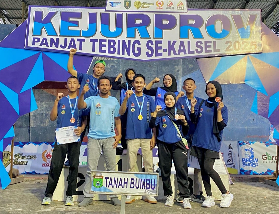 T — Tim Federasi Panjat Tebing Indonesia (FPTI) Kabupaten Tanah Bumbu berhasil membawa pulang satu medali emas dan dua medali perunggu pada ajang Kejuaraan Provinsi (Kejurprov) Panjat Tebing Kalimantan Selatan 2025 yang digelar di Kabupaten Tabalong.