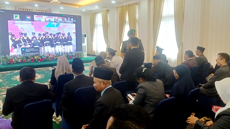 lenterakalimantan.com, MUARA TEWEH – Penjabat (Pj) Bupati Barito Utara, Drs Muhlis, bersama unsur Forum Koordinasi Pimpinan Daerah (Forkopimda), Staf Ahli Bupati, Asisten Sekda, serta kepala perangkat daerah, mengikuti Upacara Peringatan Hari Otonomi Daerah (OTDA) ke-29 Tahun 2025 secara virtual melalui Zoom Meeting. Kegiatan ini berlangsung di Rumah Jabatan Bupati Barito Utara pada Jumat (25/4/2025).