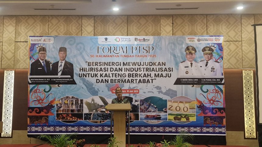 Kepala Dinas Penanaman Modal dan Pelayanan Terpadu Satu Pintu (DPMPTSP) Kalteng, Sutoyo, memaparkan strategi hilirisasi tersebut dalam Forum PTSP se-Kalteng 2025 yang digelar di Swiss-Belhotel Palangka Raya, Kamis (19/6/2025).