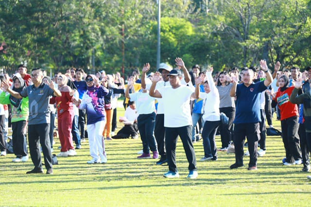 “Saya mengajak seluruh ASN dan PPPK untuk berolahraga. Paling tidak, dengan berolahraga kita bisa menjaga kesehatan tubuh, yang tentunya akan menunjang kinerja,” kata Edy usai senam.