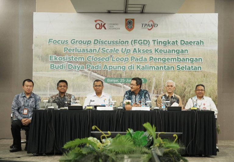 lenterakalimantan.com, KERTAK HANYAR – Pemerintah Kabupaten (Pemkab) Banjar menyatakan dukungan penuh terhadap program budidaya Padi Apung yang diinisiasi Otoritas Jasa Keuangan (OJK) Provinsi Kalimantan Selatan. Program ini resmi dimulai melalui Focus Group Discussion (FGD) bertajuk “Perluasan Akses Keuangan Ekosistem Closed Loop pada Pengembangan Budidaya Padi Apung di Kalimantan Selatan”, yang digelar di Ballroom Kantor OJK Kertak Hanyar, Rabu (25/6/2025).