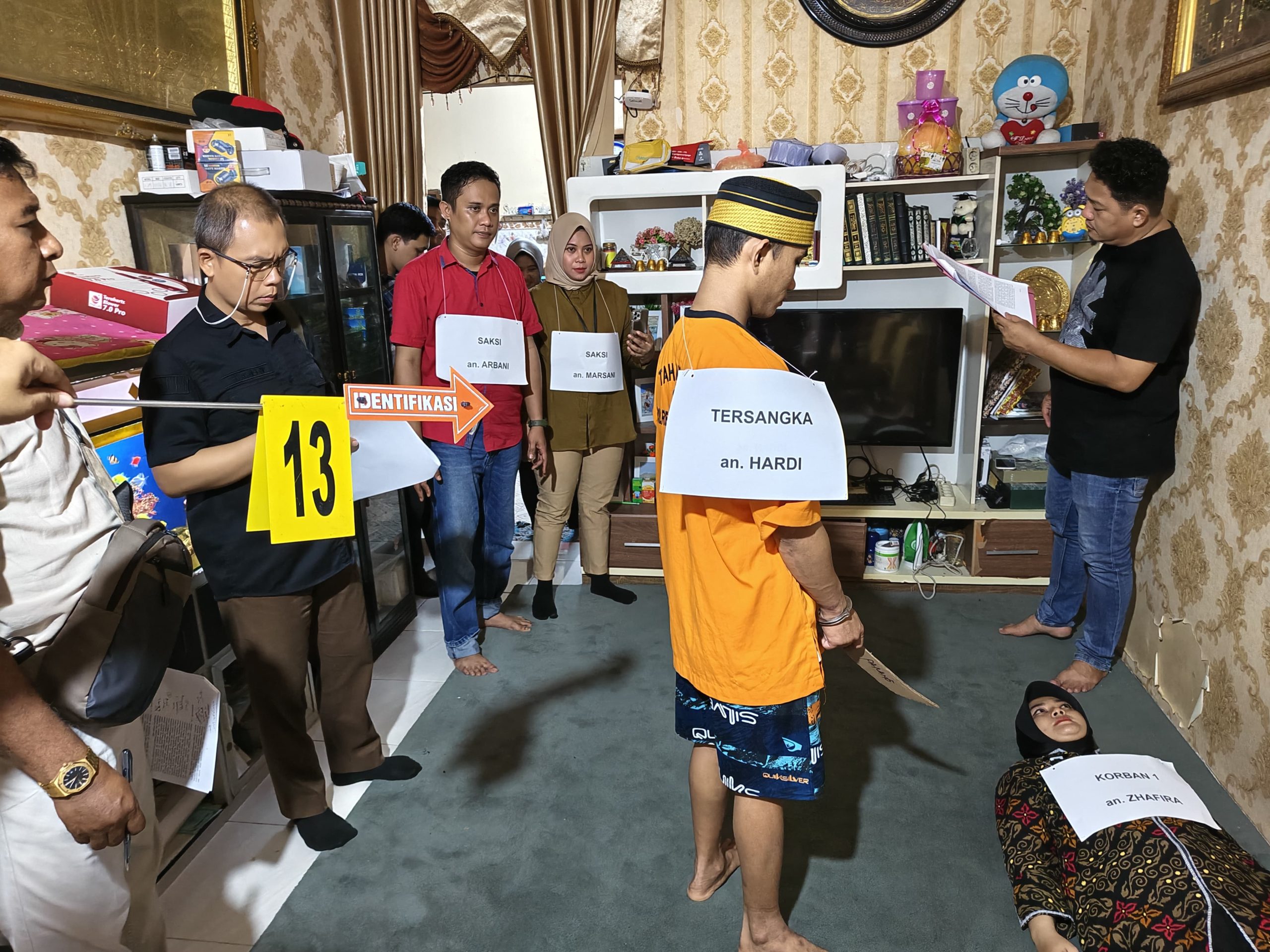 Rekonstruksi digelar di lokasi kejadian, yakni rumah korban di Jalan Insgub, Gang Pelita 4. Adegan demi adegan yang diperankan HA menggambarkan kronologi peristiwa berdarah yang terjadi pada Minggu, 11 Mei 2025, sekitar pukul 16.00 Wita.