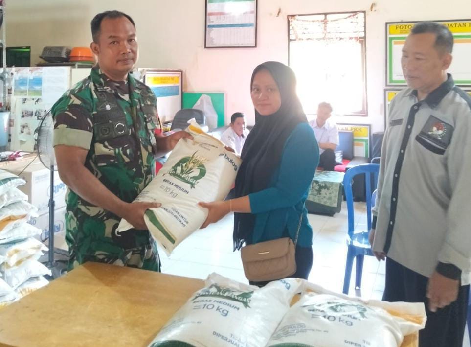 Babinsa Kodim 1009/TLA Salurkan Bantuan Pangan Beras Bagi Masyarakat Kurang Mampu