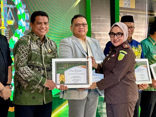 Penghargaan diserahkan langsung Kepala Kejaksaan Tinggi Kalimantan Selatan Rina Virawati, pada acara peresmian kantor Kejati Kalsel oleh Kejagung RI ST Burhanudin, beberapa waktu lalu.
