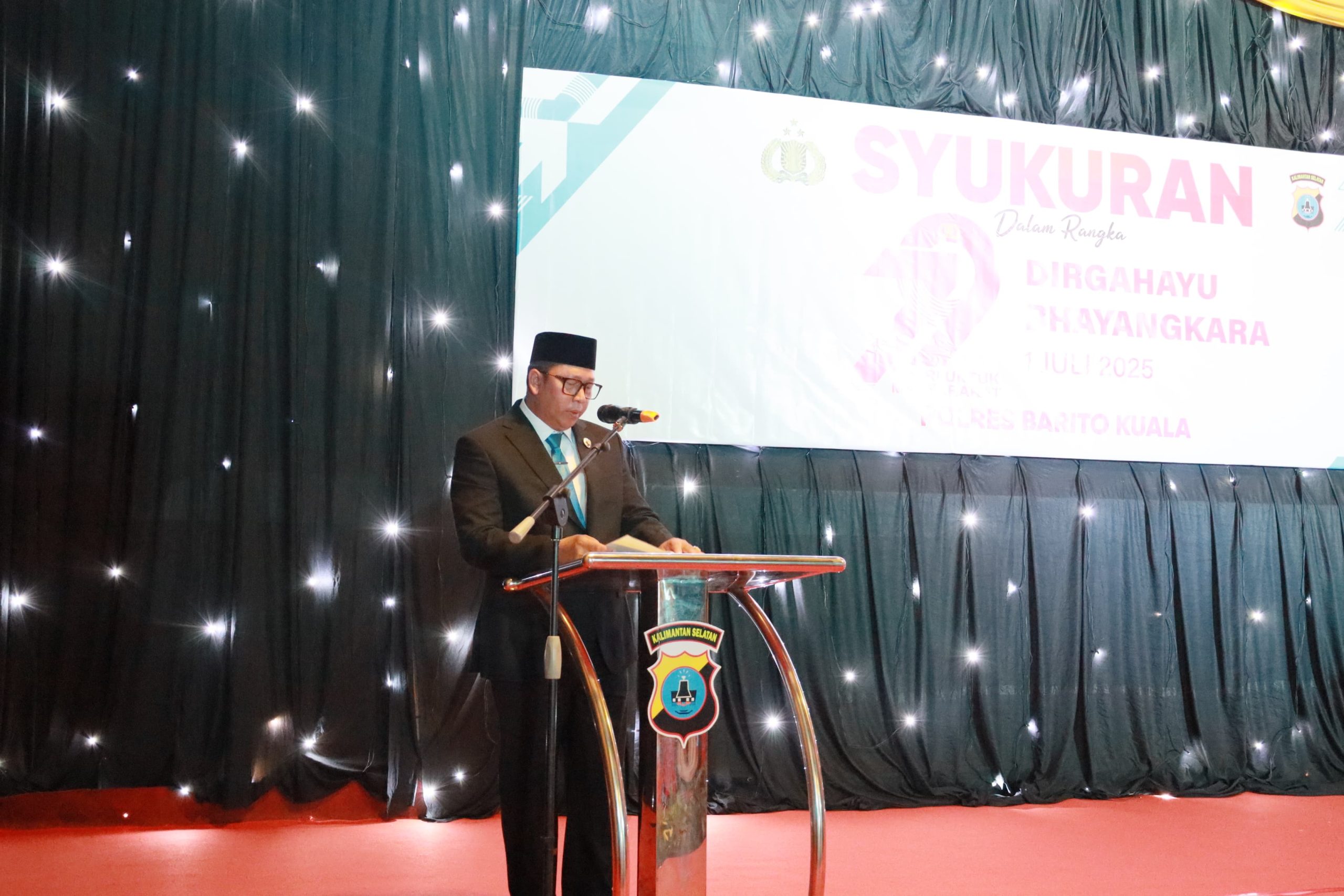 Seusai upacara, dilanjutkan dengan acara syukuran Peringatan Hari Bhayangkara ke-79 Tahun 2025 bertempat di Aula Jananuraga Polres Barito Kuala.