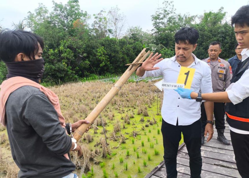 Petugas melakukan olah TKP dan identifikasi terhadap diduga pelaku penganiayaan. Foto: Humas Polres Tabalong