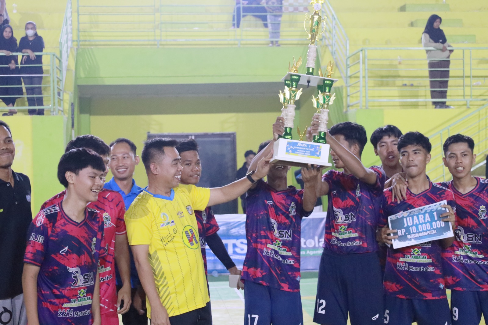 lenterakalimantan.com, MARABAHAN – Wakil Bupati Barito Kuala, H. Herman Susilo, menghadiri acara penutupan Turnamen Futsal Bupati Cup 2025 sekaligus menyerahkan piala kepada para pemenang di Gedung Olahraga (GOR) SETARA Barito Kuala, Senin malam (30/6/2025).