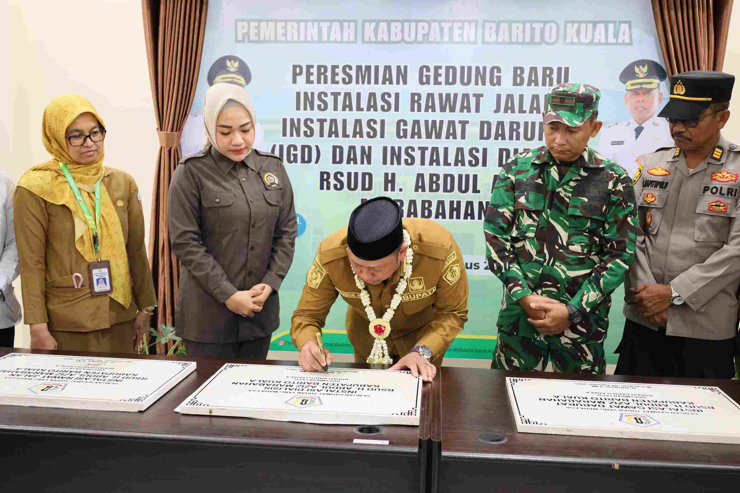Bupati Barito Kuala, H. Bahrul Ilmi, resmikan Gedung Instalasi Rawat Jalan, Instalasi Gawat Darurat (IGD), dan Instalasi Dialisis RSUD H. Abdul Aziz Marabahan, bertempat di lingkungan rumah sakit setempat, Senin (4/8/2025)
