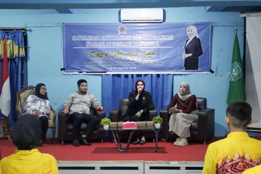 lenterakalimantan.com, TAPIN – Wakil Ketua Dewan Perwakilan Rakyat Daerah (DPRD) Provinsi Kalimantan Selatan (Kalsel), Desy Oktavia Sari, menggelar Sosialisasi Revitalisasi dan Aktualisasi Nilai-Nilai Ideologi Pancasila (SOSREV) di Kantor Badan Kesatuan Bangsa dan Politik (Kesbangpol) Kabupaten Tapin, Selasa (19/8/2025).
