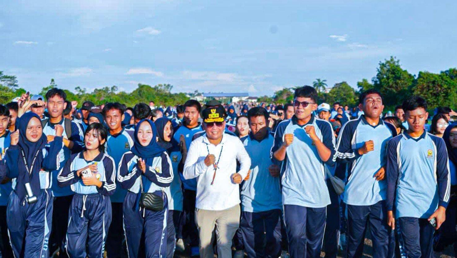 lenterakalimantan.com, MUARA TEWEH — Gubernur Kalimantan Tengah H. Agustiar Sabran menyapa ratusan pelajar SMA Negeri 1 Muara Teweh dan warga yang memadati kawasan Bandara Beringin, Selasa (5/8/2025) pagi. Bandara yang kini tak lagi beroperasi itu seketika hidup kembali, berubah menjadi arena jalan santai penuh tawa dan semangat.