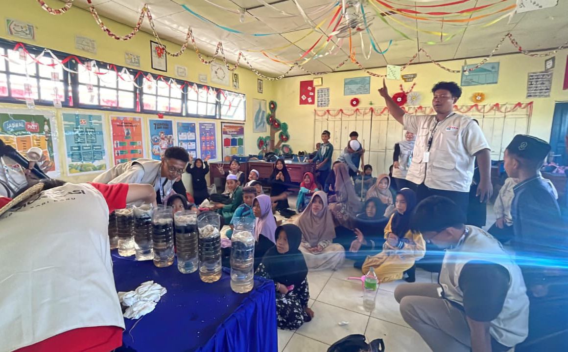 Raja, salah satu mahasiswa yang menjadi ketua pelaksana, menjelaskan bahwa belajar membuat penyaring air sangat relevan dengan kondisi geografis desa.
