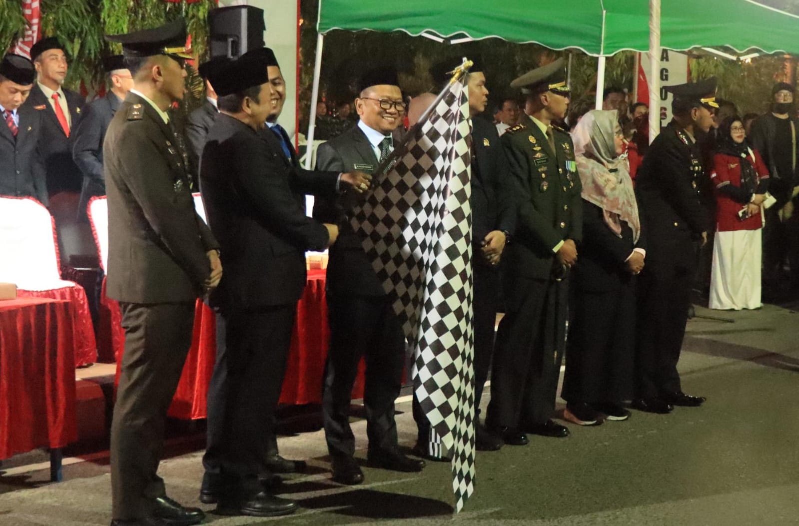 Peserta pawai obor ini dilepas langsung Bupati Tabalong HM Noor Rifani bersama Wakil Bupati Tabalong Habib Muhammad Taufani Alkaf dan unsur Forkopimda di depan area Pendopo Bersinar.