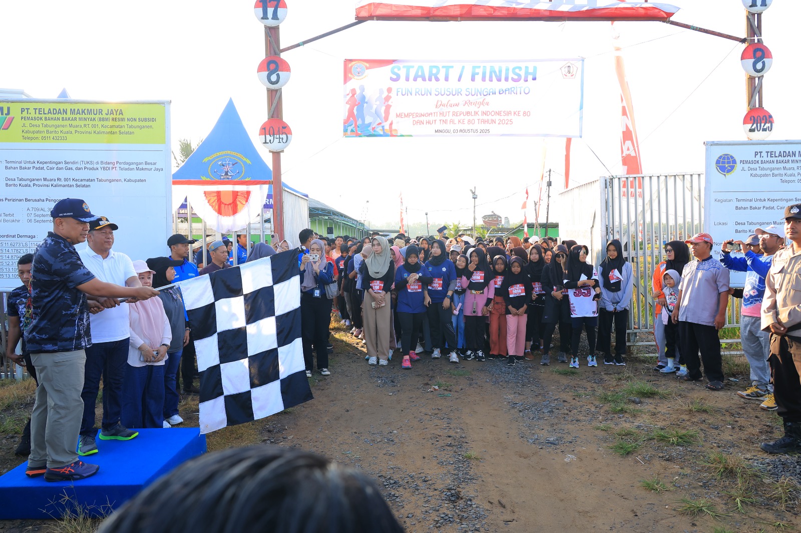 lenterakalimantan.com, MARABAHAN – Semangat kemerdekaan dan jiwa sportivitas mewarnai kegiatan Finisher Fun Run Susur Sungai Barito yang diikuti oleh ratusan pelajar serta pemuda dari berbagai wilayah di Barito Kuala. Kegiatan ini digelar oleh Pangkalan TNI Angkatan Laut (LANAL) Banjarmasin dalam rangka memperingati HUT ke-80 Republik Indonesia dan HUT ke-80 TNI AL Tahun 2025. di Kecamatan Tabunganen, Kabupaten Barito Kuala, Minggu (3/8/2025)