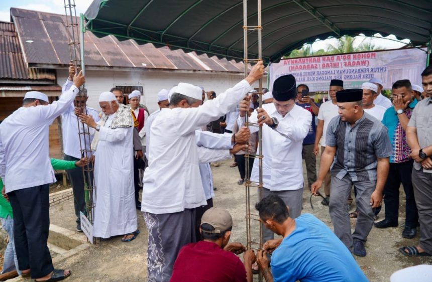 Bupati Balangan, Abdul Hadi, menghadiri peletakan batu pertama di Langgar Nurul Rahman Kecamatan Halong, Balangan. Sumber Foto: MC Balangan