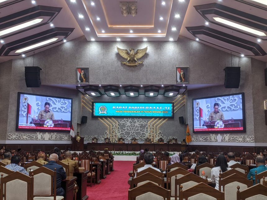 Jawaban itu disampaikan dalam Rapat Paripurna ke-21 Masa Sidang III, yang dipimpin Ketua DPRD Arton S. Dohong di ruang rapat paripurna, Senin, 25 Agustus 2025.
